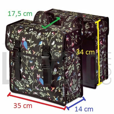 Avec une fermeture Ă rabat et des clips servant Ă sĂ©curiser le contenu, cette double sacoche possède des fonds rigides et est faite en polyesther dĂ©perlant pour une meilleure protection en cas d’humiditĂ©. Elle possède un look Ă©lĂ©gant assez fĂ©minin grâce Ă des motifs printaniers Ă fleurs, hiboux, papillons et autres oiseaux.
