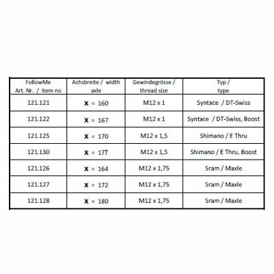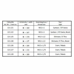 L’axe de diamètre M12 est proposĂ© en 3 tailles de filetage – M12 x 1 – M12 x 1.5 – M12 x 1.75 mm – et pour 3 types de moyeu selon la longueur choisie.Â