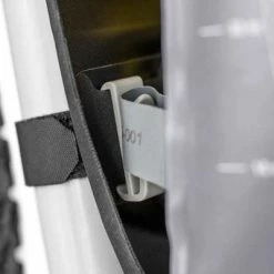 Une fois installĂ©e dans la sacoche, la poche Ă eau se connecte au clip accessoire prĂ©sent dans les sacoches bikepacking de la marque (photo 4). Sa grande ouverture permet un remplissage facile sans avoir Ă sortir la poche de la sacoche. Pour une Ă©tanchĂ©itĂ© parfaite, la fermeture hermĂ©tique est doublĂ©e d’une fermeture par enroulement Ă scratch.