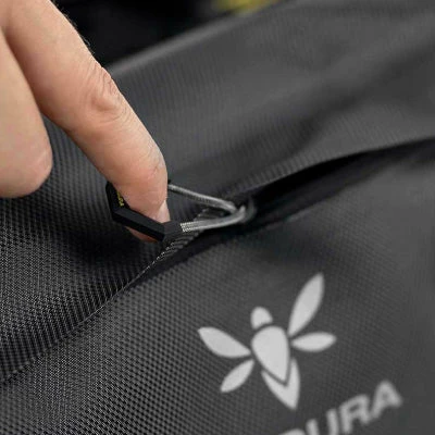 La petite sacoche est usinĂ©e Ă partir d’un laminĂ© 3 couches Ă©tanche, lĂ©ger et robuste, créé uniquement pour les besoins d’Apidura. Il est constituĂ© d’une couche impermĂ©able avec revĂŞtement PU, d’une couche de nylon durable et d’un film lĂ©ger TPU. Les coutures de la sacoche sont soudĂ©es pour former un joint Ă©tanche et la fermeture Éclair qui ouvre et ferme la sacoche est protĂ©gĂ©e par un rabat. Des Ă©lĂ©ments qui rendent la sacoche ExpĂ©dition 100% impermĂ©able et Ă©tanche. De plus, le laminĂ© est extrĂŞmement rĂ©sistant aux dĂ©chirures et aux abrasions.