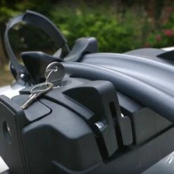 Disposez dans un premier temps le vélo sur le support et poussez le cadre vers la pince qui va se refermer automatiquement. Serrez ensuite les sangles qui fixent les roues. Ces sangles sont à cliquets faciles d’utilisation. A noter que le système de bras est également verrouillable par clé, empêchant ainsi qu’on puisse dérober le vélo sur le porte-vélo.