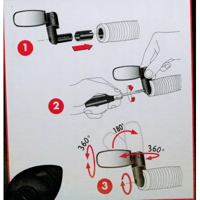 Le rétroviseur vélo Spin possède un miroir en ABS métallisé, avec lequel il n’y a aucun reflet ni éblouissement. Il est incassable. Ce rétroviseur de vélo se fixe sur l’extrémité du guidon dans le cintre.