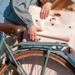 Pour faciliter son transport Ă vĂ©lo, le sac Houston se fixe sur quasiment tous les porte-bagages grâce Ă 2 crochets positionnĂ©s Ă l’arrière. Ceux-ci se clipsent et se dĂ©clipsent très simplement grâce Ă une pression. Ces crochets ont une compatibilitĂ© quasi universelle et s’adaptent Ă toutes les tailles de tubes de porte-bagages. Un rabat permet de dissimuler les crochets lorsque vous portez votre sac cabas Ă la main.