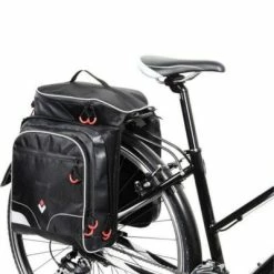 Cette sacoche offre une belle contenance de 2 x 7 litres pour une dimension de L 35 cm x l 0 cm x h 28 cm. Elle s’installe sur le porte-bagages arrière par un système de sangles et de boucles. Grâce à son revêtement déperlant, cette sacoche est étanche pour garder ses affaires à l’abri de l’humidité.