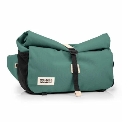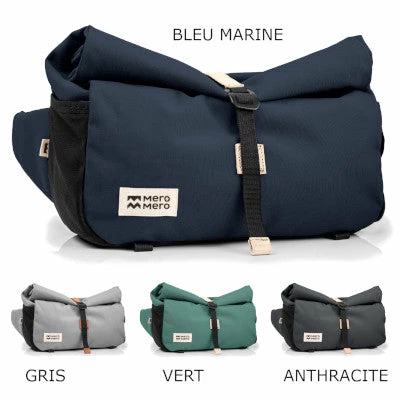 La banane Piha peut accueillir un grand nombre d’affaires. Elle possède un volume de 3 litres lorsqu’elle est fermée compressée ; il peut aller jusqu’à 6 litres lorsque la sacoche est déroulée. La sacoche Mero Mero possède une fermeture par aimant puis par enroulement “roll top” avec crochet qui sert à adapter la taille de votre sacoche au volume d’affaires à emporter. Cette fermeture par le haut a également l’avantage de vous permettre d’accéder facilement à vos affaires lorsque vous êtes à vélo. Ainsi, pas besoin de descendre du vélo, il vous suffit simplement de dérouler la fermeture.