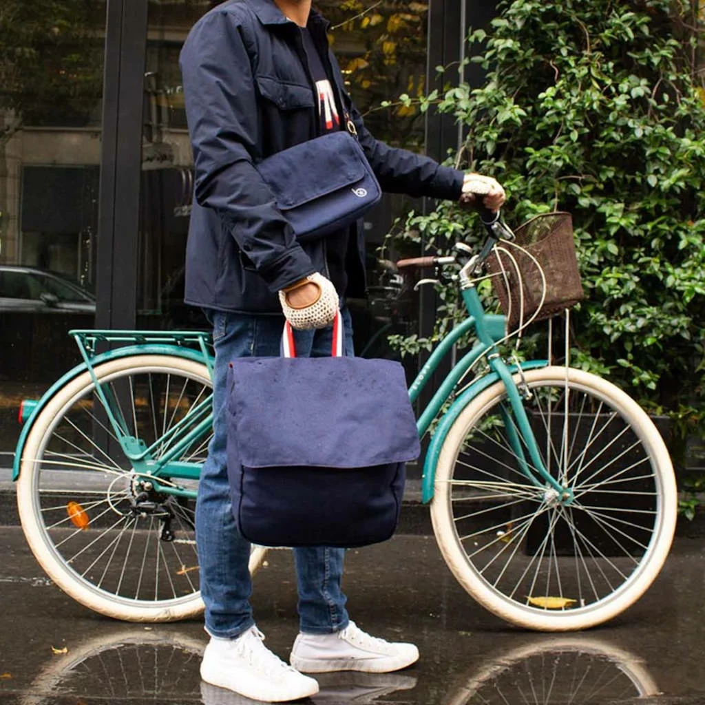 Badawin propose également la sacoche sur porte-bagages assortie en bleu marine.