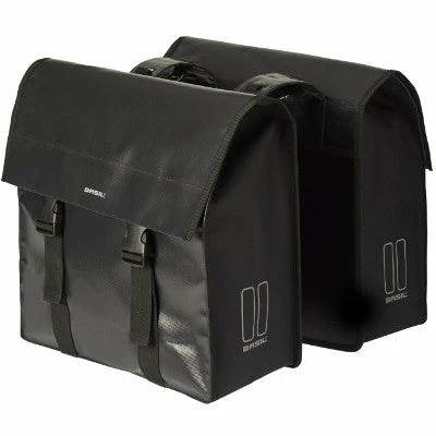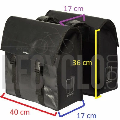 Cette sacoche double Basil permet de transporter les affaires Ă l’abri des intempĂ©ries grâce Ă son revĂŞtement Ă©tanche en tarpaulin et sa grande fermeture couvrante qui empĂŞche la pluie de s’infiltrer. La sacoche vĂ©lo double se fixe sur un porte bagages arrière par les deux sangles Universal bridge qui s’adaptent Ă la plupart des porte bagages vĂ©lo, y compris Ă©lectriques, ayant une largeur de 16,5 cm max.