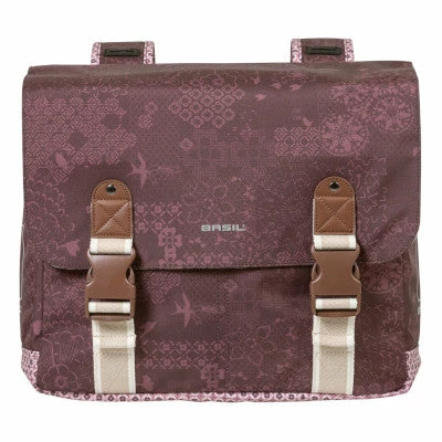 Pour le transport de ses affaires ou de ses petites courses à vélo au quotidien, Basil propose une double sacoche arrière pratique et stylée dans sa collection Bohème rouge vintage.