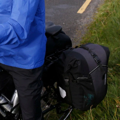 - Pour augmenter la capacitĂ© de chargement, il est possible d’installer le sac Rack Pack M de 31L sur la plateforme du porte-bagages, qui se fixe aux sacoches via un système de clips.